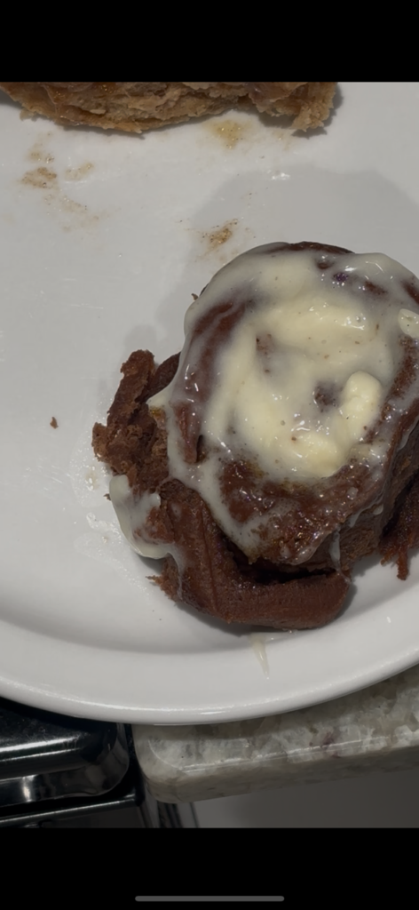- Once out, add the cream cheese glaze on top and enjoy!